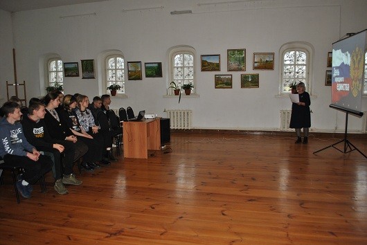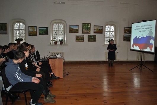 Участники мероприятия совершили увлекательное путешествие по Великой Руси, её традициям и обычаям, культуре и искусству. Узнали о возникновении праздника, о великих страницах истории Родины, о людях, которые отстояли Отечество в грозный час.