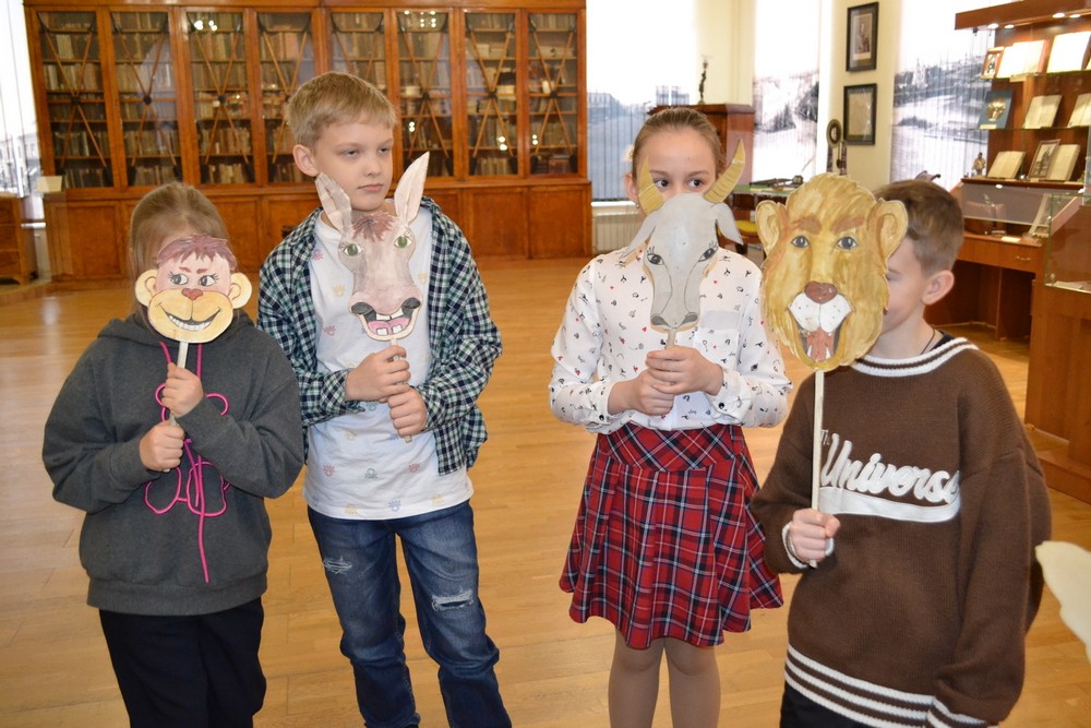 В завершение познавательного квеста по известным басням, школьники посмотрели мультфильм по одной из них в Литературном салоне музея.