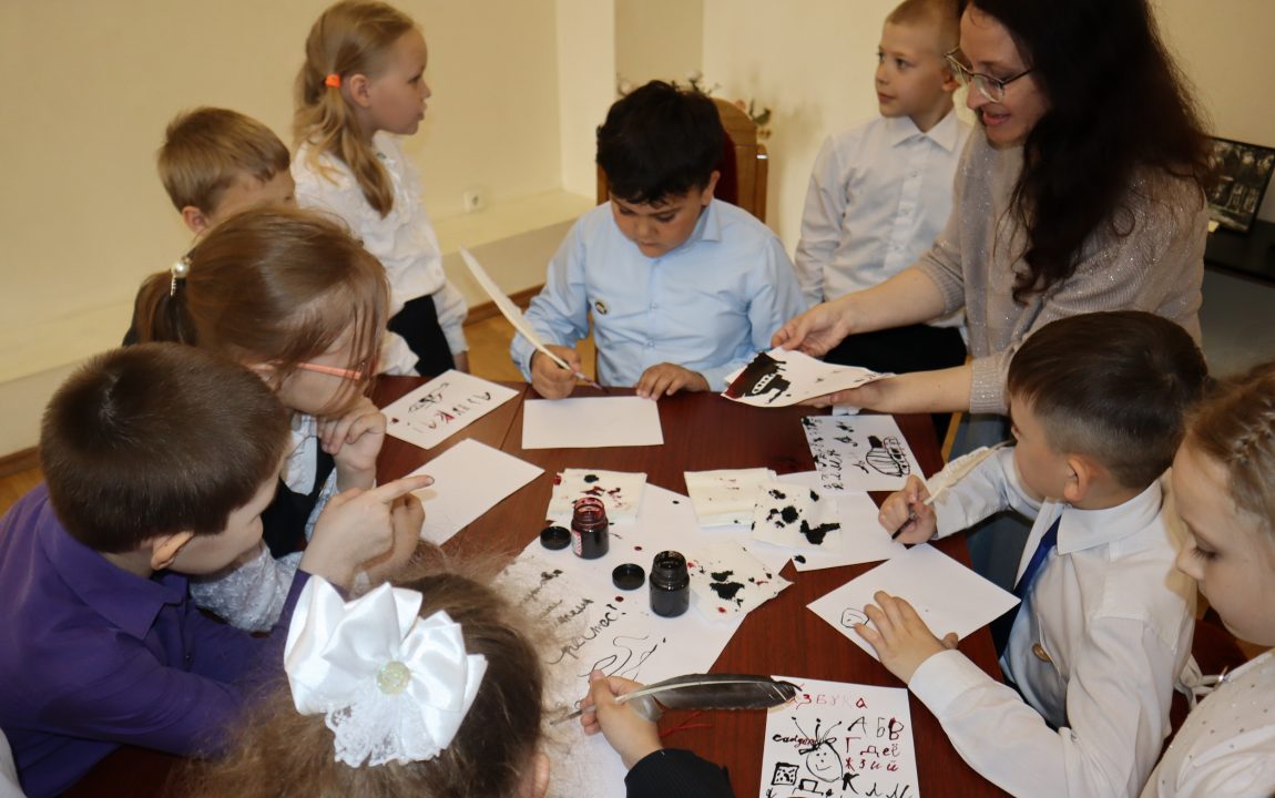 Детям поведали о создании азбуки и развитии славянской письменности, изготовлении рукописных книг. Предметом особо пристального внимания и изучения стало внутреннее оформление книги, книжный орнамент. Гимназистам рассказали о различных видах письма с названиями шрифтов, художественном оформлении глав и разделов старинных изданий, о происхождении выражений «красная строка» и «прочитать от доски до доски». Также дети узнали о процессе производства перьев и составе чернил, которые использовались при написании.