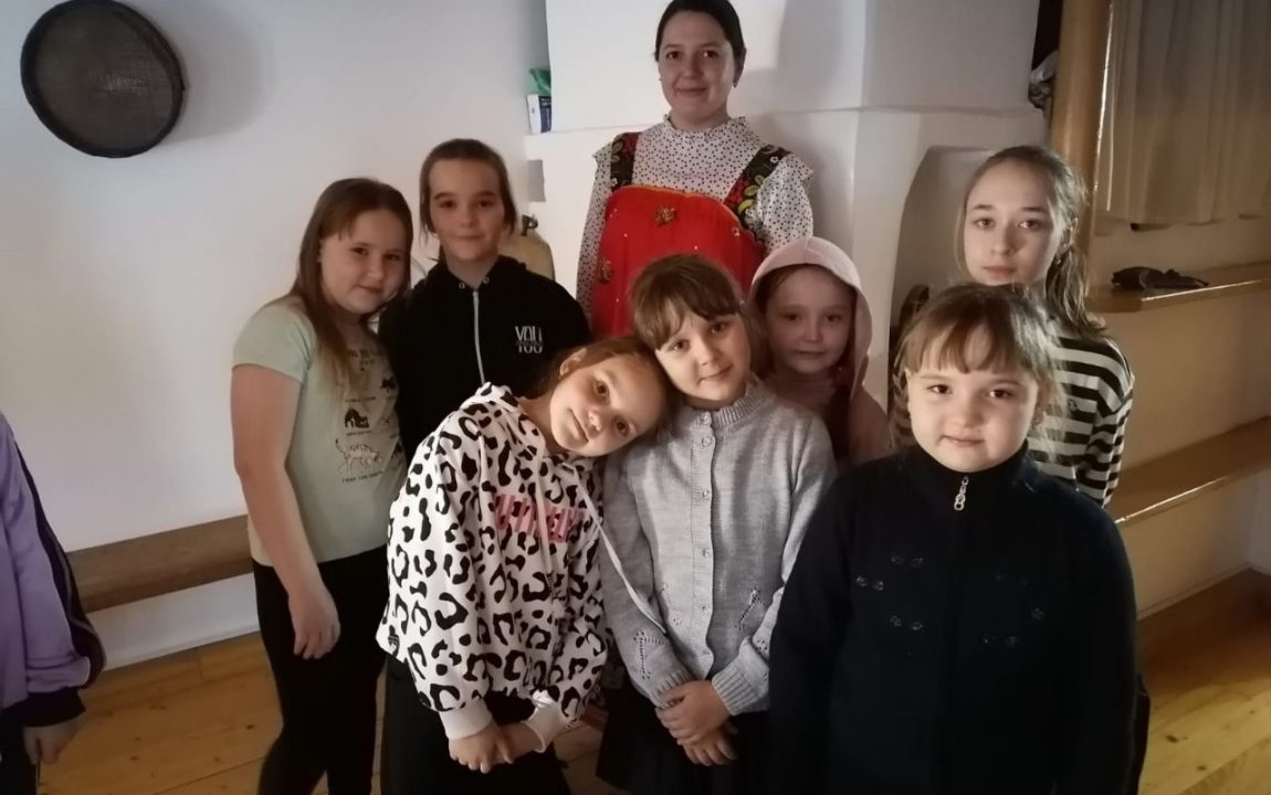 В продолжение мероприятия, Акулина – крепостная крестьянка Белынских, показала кухню, где находятся орудия крестьянского труда. Рассказала, что на кухне устраивались посиделки, на которых пели песни, играли в игры, а на святках девушки гадали.