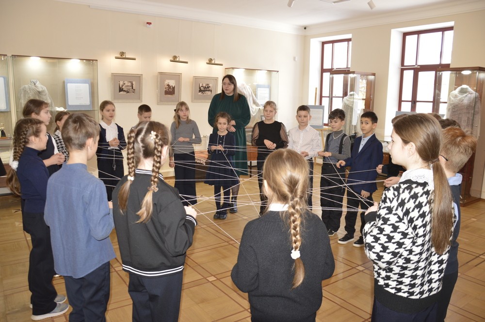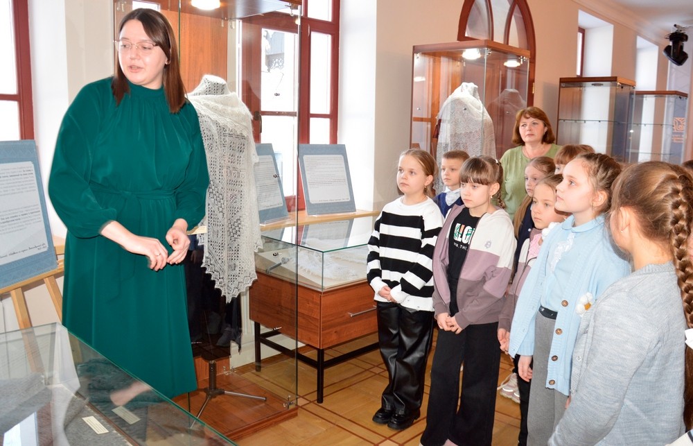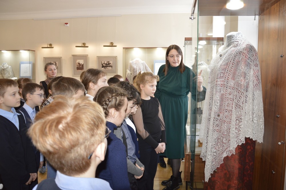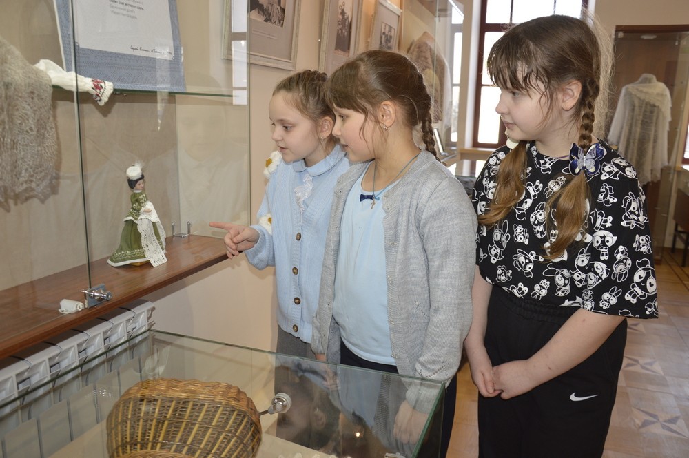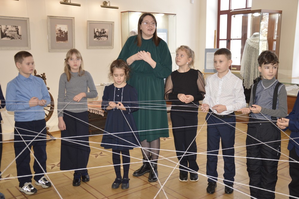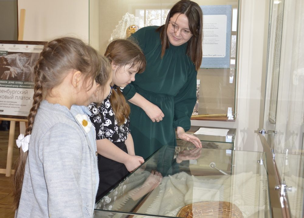 Рассказывая о представленных на выставке экспонатах и процессе их создания, специалист центра обратила внимание детей на уникальность каждого изделия, созданного вручную. А затем предложила взять в руки клубок пряжи и самим сплести паутину. Так, «за работой», школьники и узнали, почему ажурные платки, связанные из тончайшей и прочной, подобно паутине, пряжи, оренбургские мастерицы стали называть паутинкой.