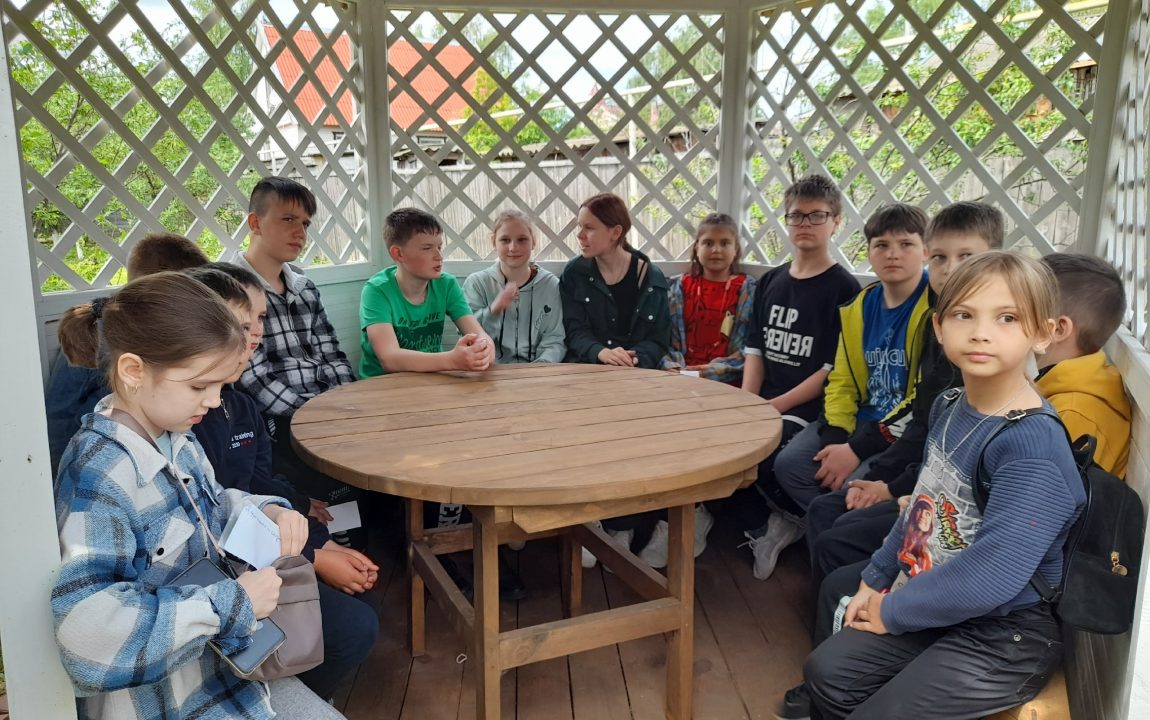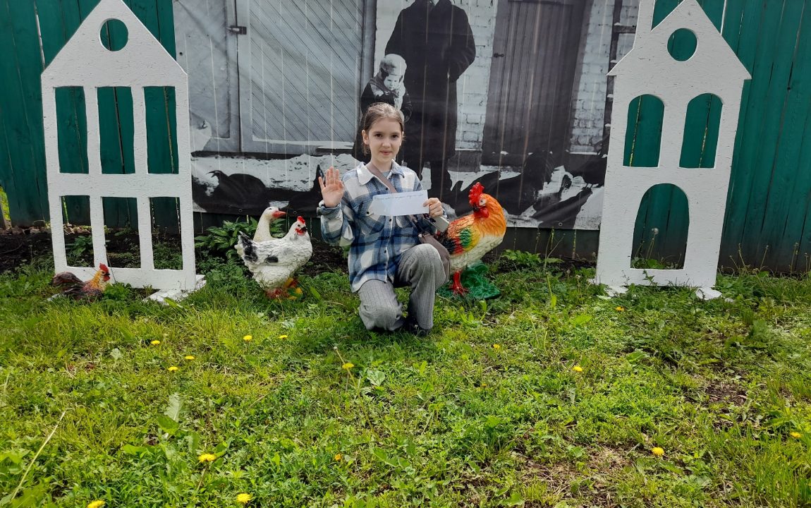 Ребята разделились на команды и принялись выполнять задания игры: познакомились с обитателями Купринского сада, встретили друзей Александра Ивановича, накормили курочек на подворье.