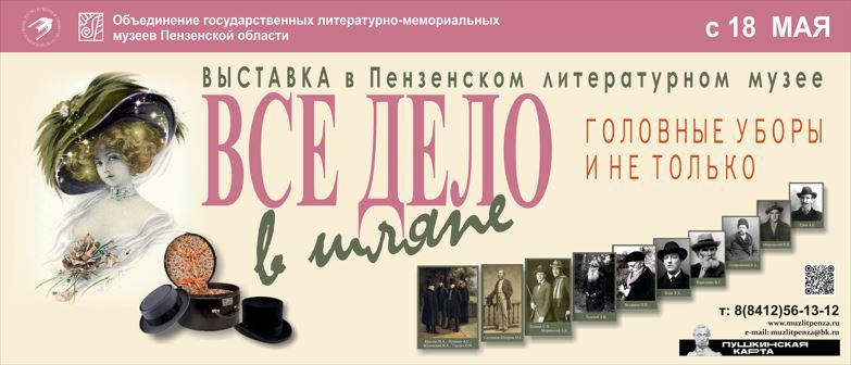18 мая 2023 г. в 15.00 в Пензенском литературном музее состоится торжественное открытие выставки головных уборов XIX-XXI вв. из фондов ГБУК «Объединение государственных литературно-мемориальных музеев Пензенской области».
