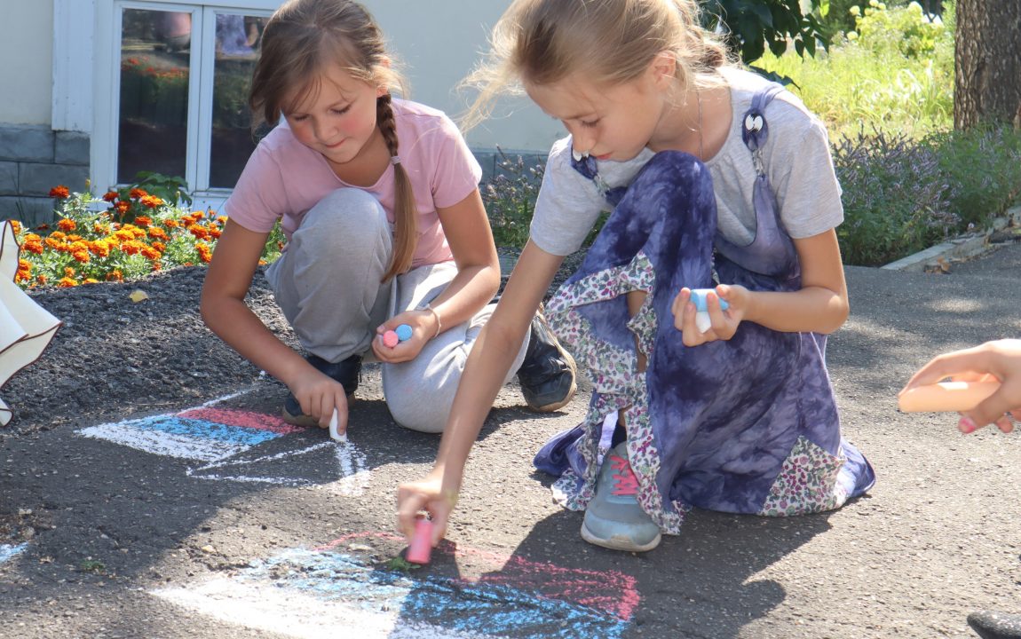 Маленьким посетителям рассказали о символах государства, о значении цветов российского флага, предложили поучаствовать в познавательной игре и украсить своими яркими рисунками Литературный дворик.