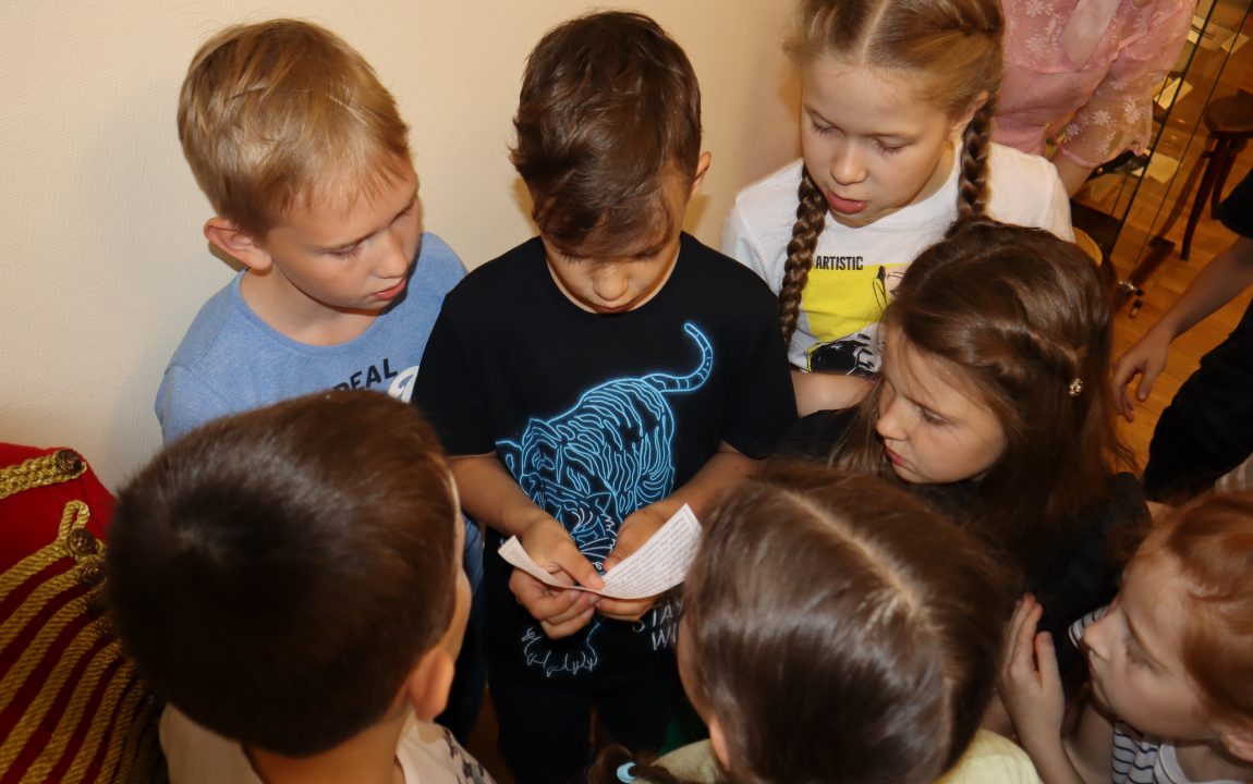 Дети разделились на три группы, активно выполняли интересные и познавательные задания, в результате которых получили буквы из ключевой фразы, зашифрованной специалистами музея. После каждого этапа группы менялись и переходили между залами. В завершение «путешествия» школьники вновь объединились, чтобы справиться с последней задачей – составлением известной цитаты.