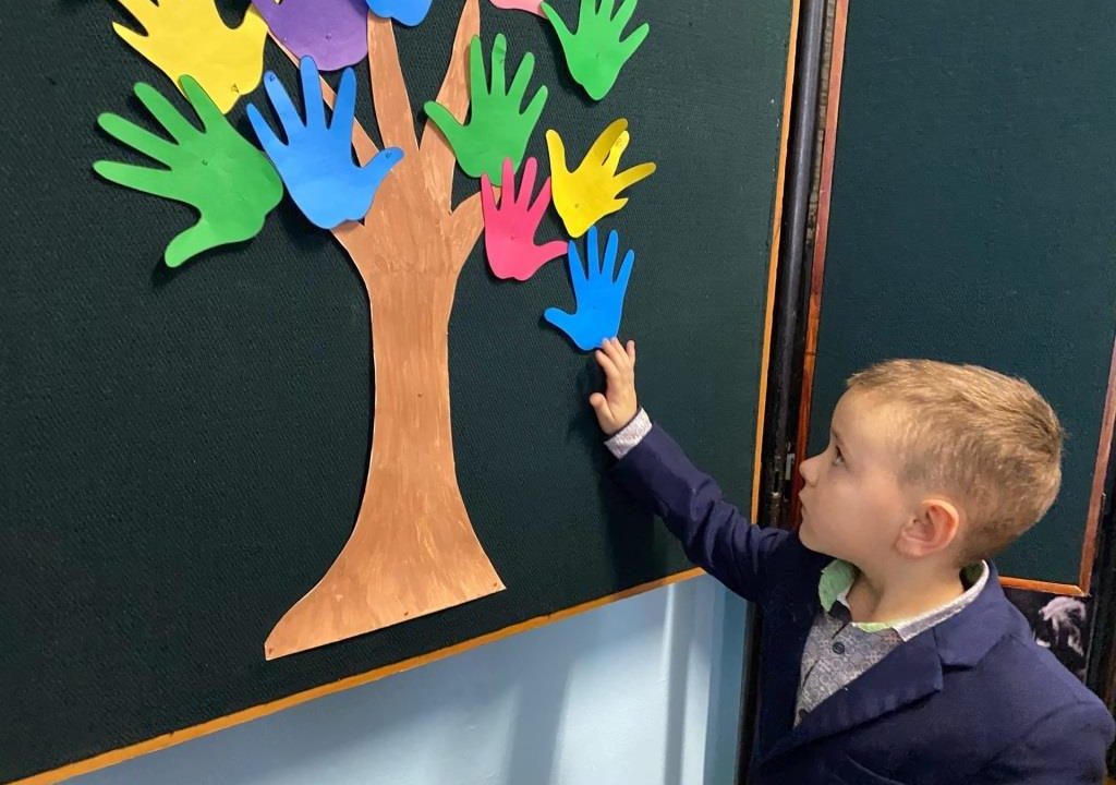 В конце встречи дети вырезали из цветной бумаги разноцветные ладошки и написали на них добрые пожелания друг другу.