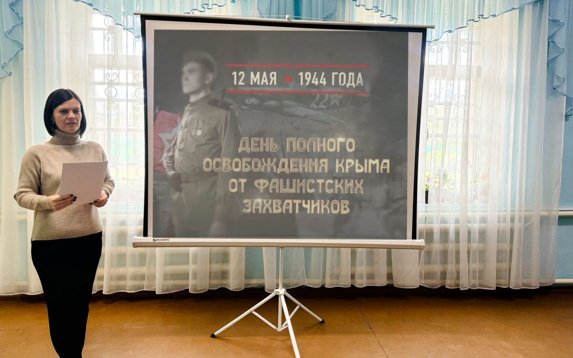Сотрудники музея рассказали учащимся МБОУ СОШ с.Наровчат об основных событиях Крымской наступательной операции, боевых действиях на территории полуострова в годы Великой Отечественной войны, о вкладе военнослужащих и партизан в освобождение городов Крыма.