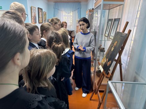 Частыми гостями на выставке стали учащиеся МБОУ СОШ с. Наровчат. Ученикам 6 класса, пришедшим в выставочный зал вместе со своим классным руководителем Мокроусовой Н.С., сотрудники музея рассказали о том, как разные поколения художников воспринимали и интерпретировали образы известного писателя.