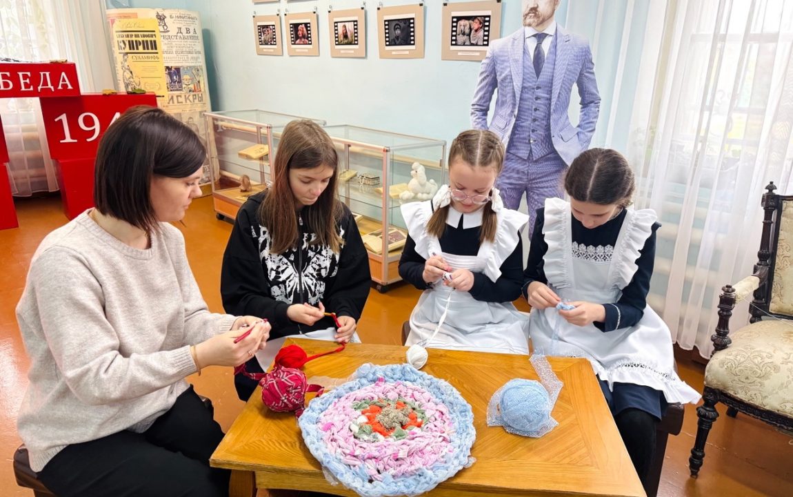 В выставочном зале музея прошел мастер-класс «Час домашнего рукоделия». Участники мероприятия познакомились с мастерством вязания ковриков. Такие коврики используют в быту, кроме того, их можно применить для украшения интерьера.