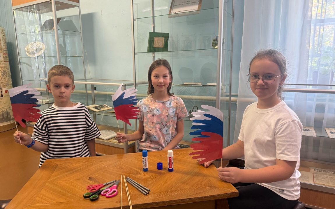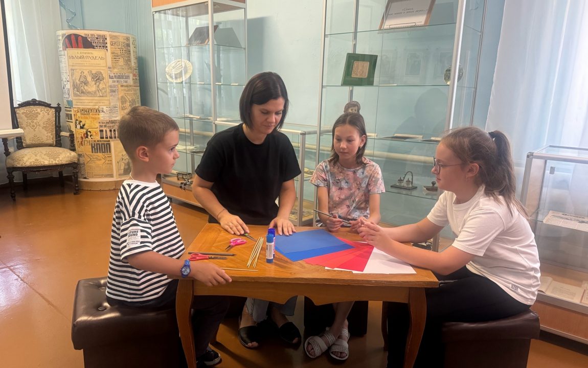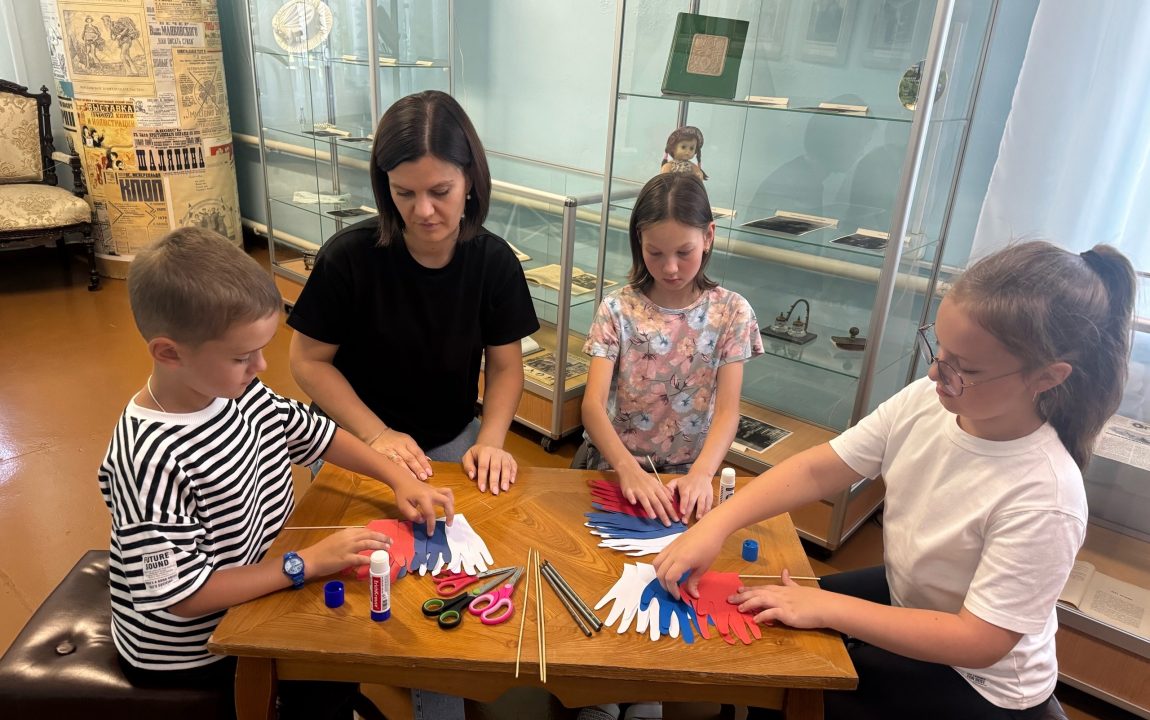 В выставочном зале музея в День Государственного флага Российской Федерации прошел мастер-класс «Флаг России – символ единства». Сначала участникам мастер-класса рассказали об истории российского флага. Гости узнали о том, когда впервые появился триколор, вспомнили, что символизируют цвета флага, затем приступили к изготовлению поделки из бумаги в цветовой гамме величественного флага России.