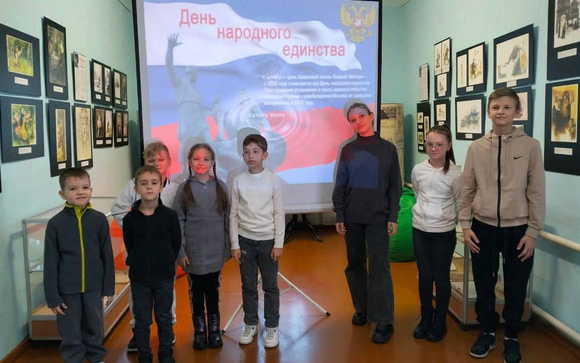 В День народного единства в выставочном зале музея А.И. Куприна прошел урок патриотизма «Едины духом». Соотрудники музея рассказали участникам мероприятия об истории праздника, показали фильм, посвященный тяжелым страницам российского государства.Обсуждая фильм, ребята сделали вывод, что трудности объединяют жителей нашей страны и делают их сильнее духом.