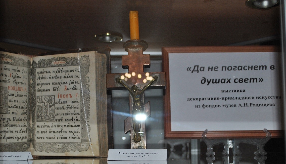 Свою работу выставка начала в Вознесенском кафедральном соборе города Кузнецка. Особый интерес посетителей Вознесенского кафедрального собора вызвал стеклянный нательный крест, найденный на могиле Афанасия Александровича Радищева (младшего сына А.Н. Радищева), который можно видеть среди экспонатов выставки. Также на выставке представлены старинные предметы церковной утвари: венец, водосвятная чаша, крест напрестольный XVIII в., подсвечник для одной свечи, металлические иконы XIX-XX вв., металлические иконы-складни XVIII в. с изображением Богородицы, Иоанна Предтечи, Николая Чудотворца и других святых, которые были найдены при реставрационных работах храма Преображения Господня. Возможно, некоторые из них принадлежали семье Радищевых и их дворовым людям.
