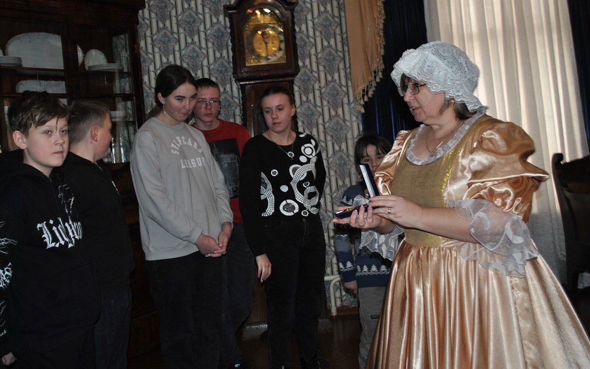 В музее А.Н. Радищева прошла театрализованная экскурсия «На долг и честь завещаны отцами» ко Дню защитника Отечества для учащихся школы села Комаровка Кузнецкого района.
