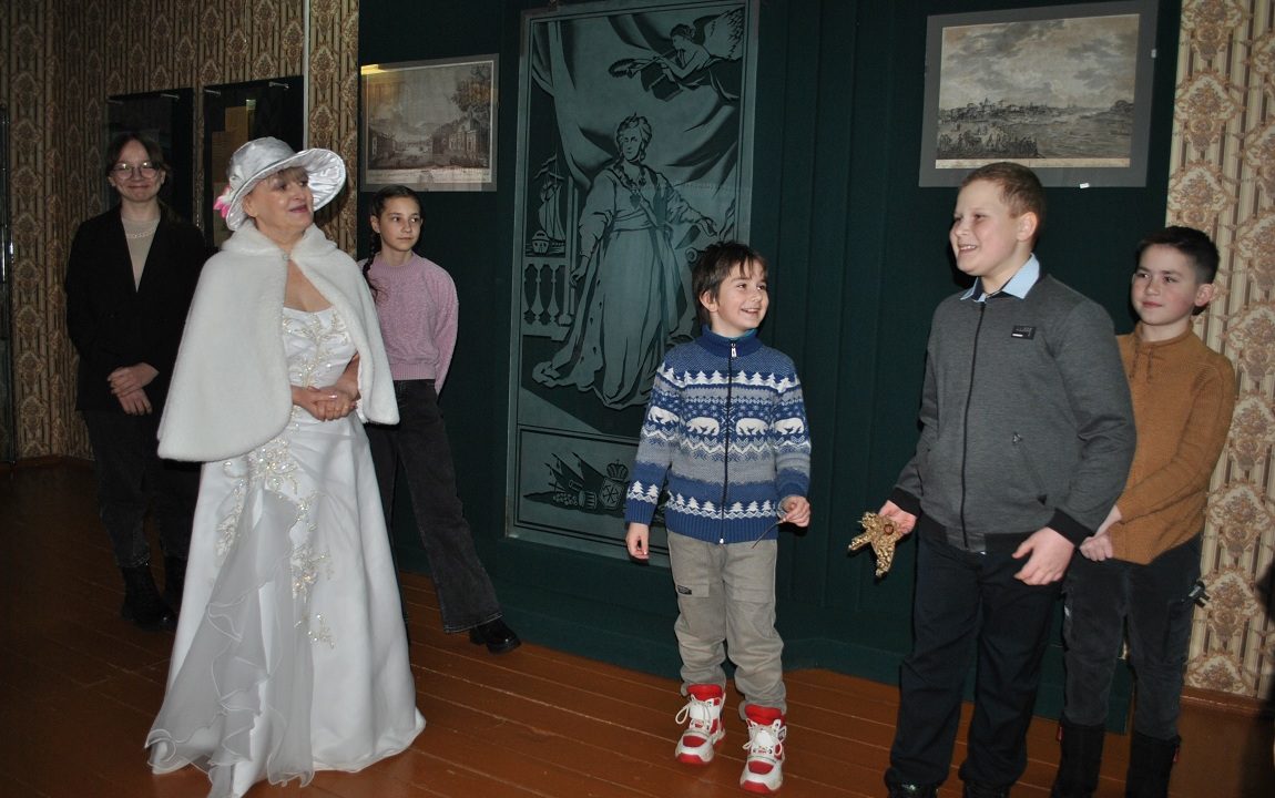 Во время экскурсии сотрудники музея А.Н.Радищева в образах жены Афанасия Александровича Радищева, младшего сына писателя, Камиллы Ивановны и его сестры Анны рассказали ребятам о мужчинах рода Радищевых, свято выполнявших свой долг перед Отечеством.