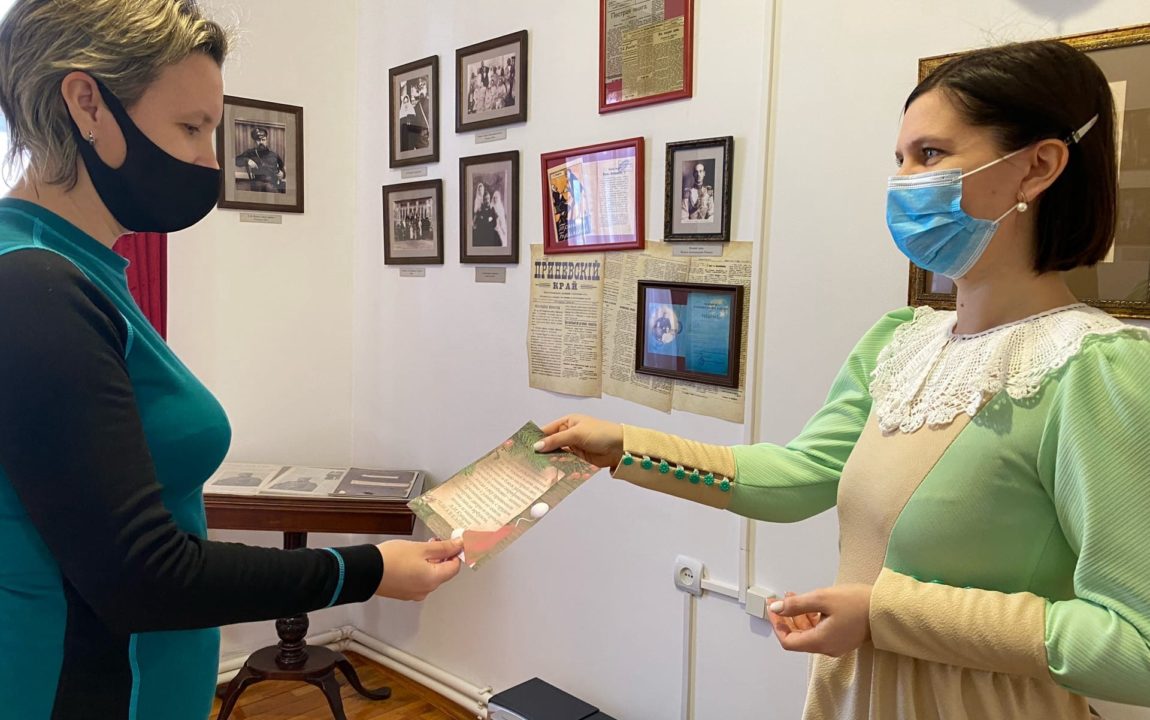 Знатоки Купринских произведений, правильно ответив на вопросы сотрудников музея, получили на память «Рождественский подарок» — красочную открытку с описанием Рождества из произведений Куприна.