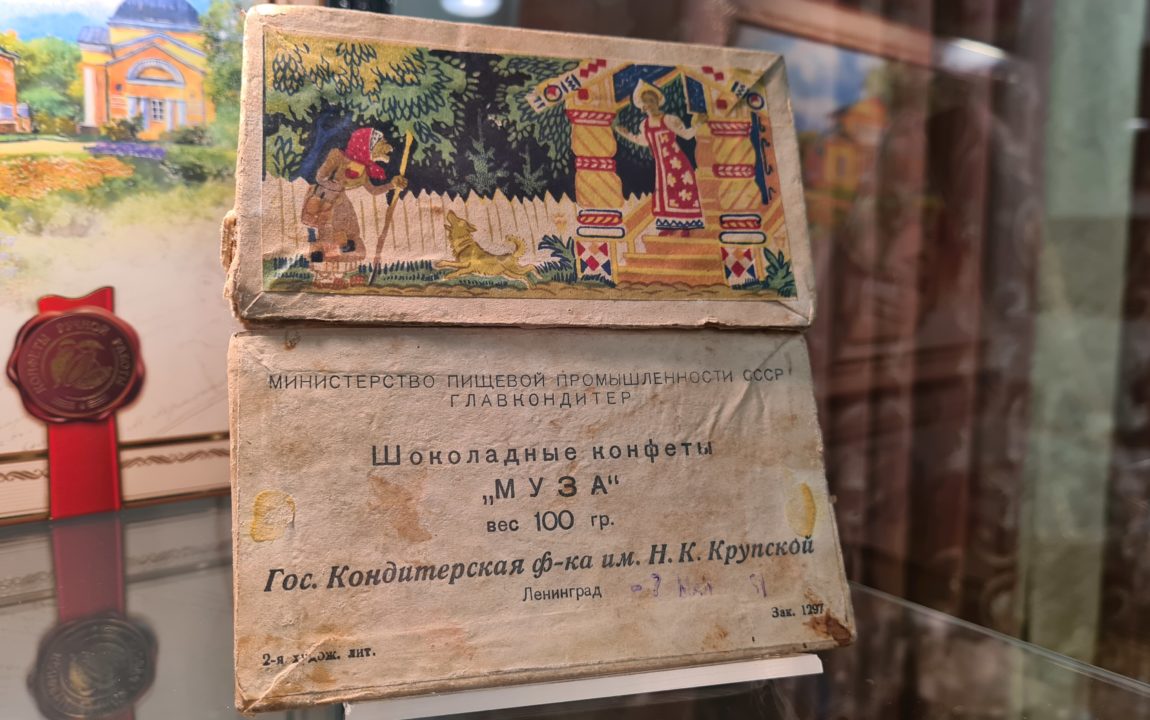 Конфетный фантик, не просто бумажка, своеобразный исторический артефакт, свидетельствующий об огромной любви народа к карамелькам, шоколадкам и родной литературе. «Слава России», «Галерея писателей», «Шоколадная библиотека» — такие серии обёрток, посвященные русским писателям, выпускали в свет на рубеже XIX-XX веков не прославленные издатели, а кондитеры. В «шоколадной библиотеке» можно ознакомиться с удивительными образцами человеческой памяти, признательности и уважения к великой русской литературе. На этикетках запечатлены поэты и писатели, театральные деятели, а также литературные произведения и их герои. Представлены имена, словно пришедшие из школьного курса: Лев Толстой и Николай Гоголь, Иван Крылов и Михаил Лермонтов, Александр Грибоедов, Иван Никитин, Михаил Ломоносов. И, конечно, Александр Сергеевич Пушкин! После столетнего юбилея поэта, широко отмечаемого по всей России, в честь него называли пряники и печенье, шоколад и карамель, парфюм, папиросы и всевозможные напитки. Одним из редких старинных предметов, показанных на выставке, является «фантик» — конфетный этикет 1899 года.