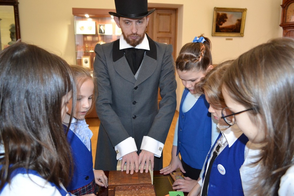 Учеников пензенской гимназии привлек активный игровой формат квест-экскурсии, и они отправились в «Путешествие с классиками» по залам Литературного музея в сопровождении кавалера и элегантной дамы.