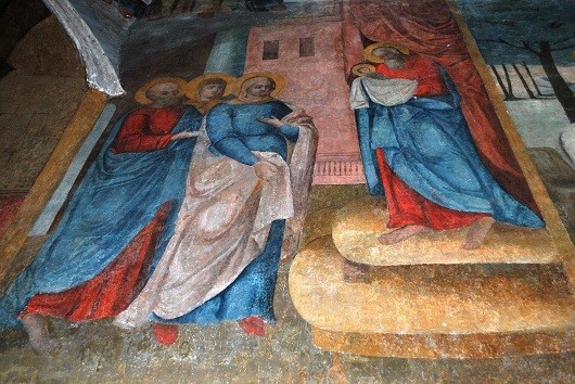 В храме Преображения Господня, где прошла праздничная литургия находится икона «Симеон Богоприимец» XIX века, отражающая событие праздника. А в главном пределе храма среди сюжетов фресковой живописи XVIII века есть композиция «Сретение Господне». Дева Мария передает Богомладенца на руки старцу Симеону. За спиной Богородицы изображён Иосиф и Анна-пророчица.