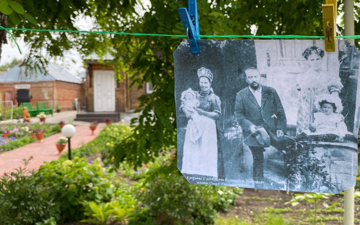 Фотографий, связанных с историей семьи Куприных, настолько много, что они не могут вместиться в экспозицию музея. И, в связи с хорошей погодой, сотрудники разместили часть купринских фото на фото-сушке в саду.