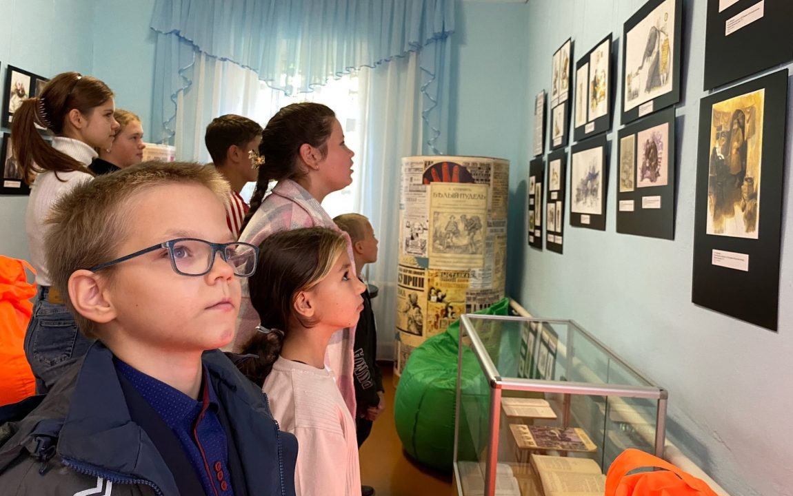 Сотрудники музея рассказали детям о том, что художники здесь являются, по сути, соавторами книг: они сделали зримыми идеи и образы писателя, помогая тем самым лучше понять содержание произведений, представить эпоху, быт, окружение героев.