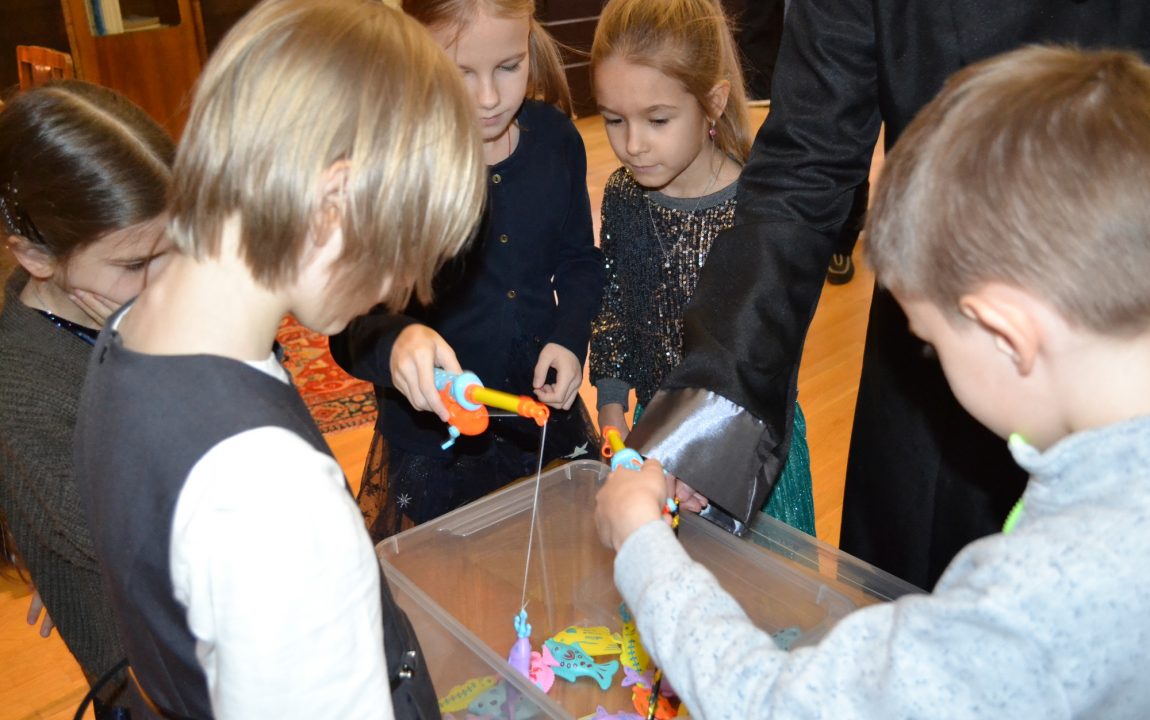 Перед тем, как добраться до ёлочки, воспитанники художественной школы «Гармония» разгадали все загадки волшебника, потерявшего не только свою магию, но и дорогу в Хогвардс, прошли сквозь вьюгу с «Госпожой Метелицей», полюбовались северным сиянием и выловили всю рыбу с «белым мишкой».