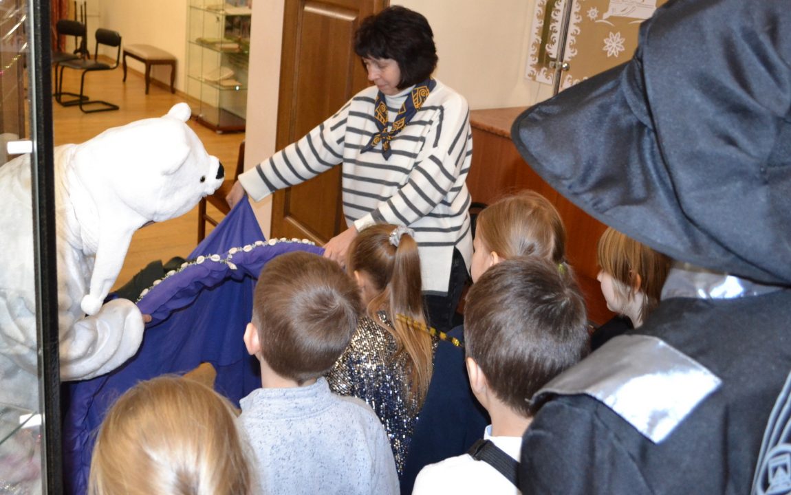 Новогодний квест «Новый год: путешествие во времени» продолжает собирать юных гостей музея вокруг нарядной зимней красавицы.