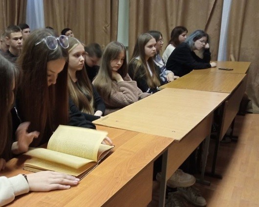Студенты колледжа не только познакомились с экспонатами, но и прошли тестирование на объем словарного запаса, вспомнили, как пользоваться словарями, и посоревновались в грамотности, логике и начитанности.